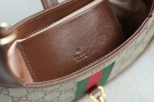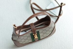 The classic Jackie 1961 handbag has been reinterpreted in a compact mini design for the Fall/Winter 2020 collection. First unveiled in 1961, the Jackie became a symbol of the celebrity lifestyle of the 1960s and 1970s, often appearing with the icon of the era, Jackie Kennedy, hence the nickname “The Jackie”. This season, the highly recognizable bag is back in fashion, made from GG Supreme canvas and equipped with an additional detachable shoulder strap. The second shoulder strap can be fastened to the bag with a buckle, injecting a modern and fashionable style into the classic design, creating a variety of carrying options such as hand, shoulder or crossbody.